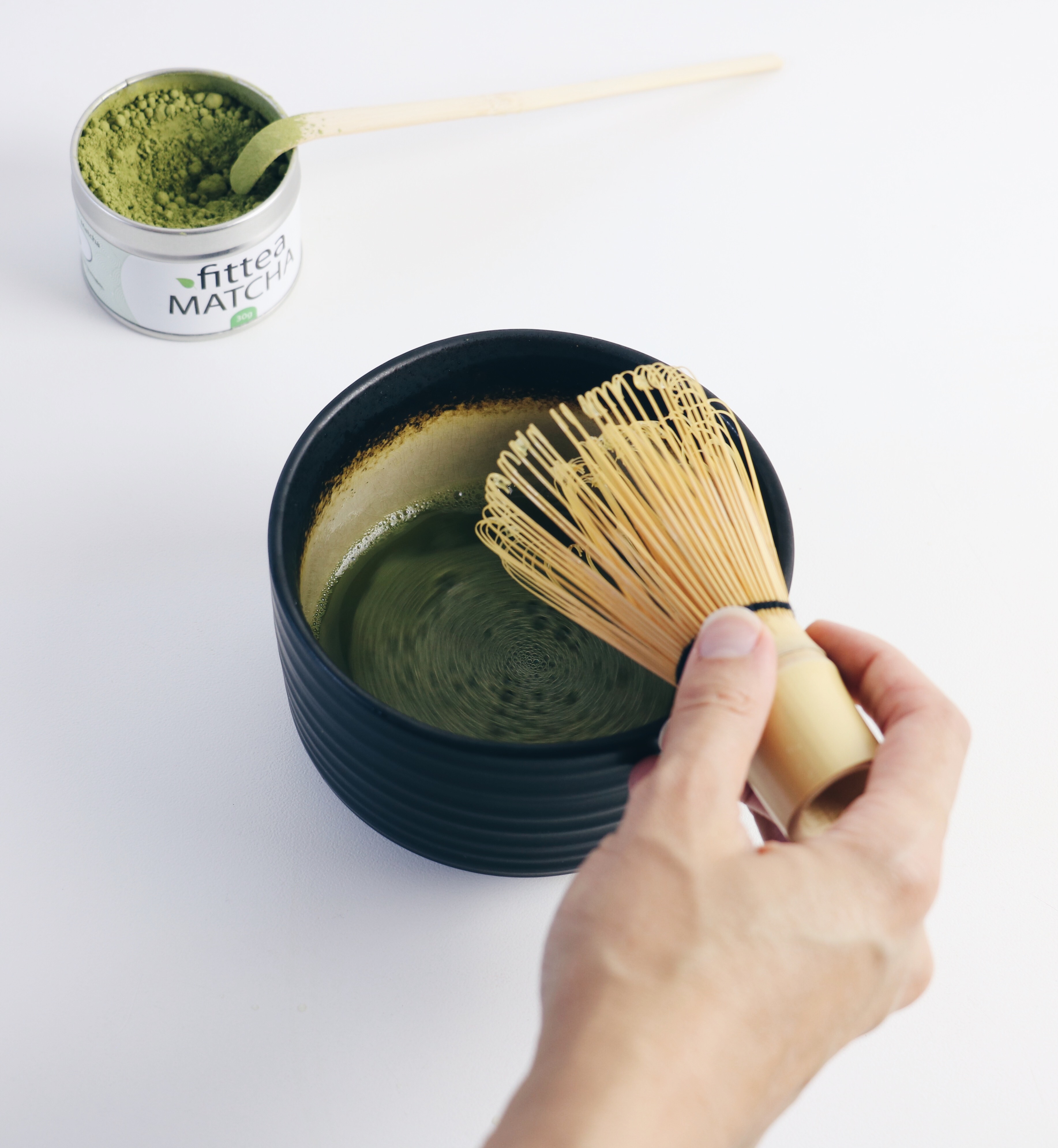 - Ajouter 1g de Matcha dans votre bol à l’aide de la tige