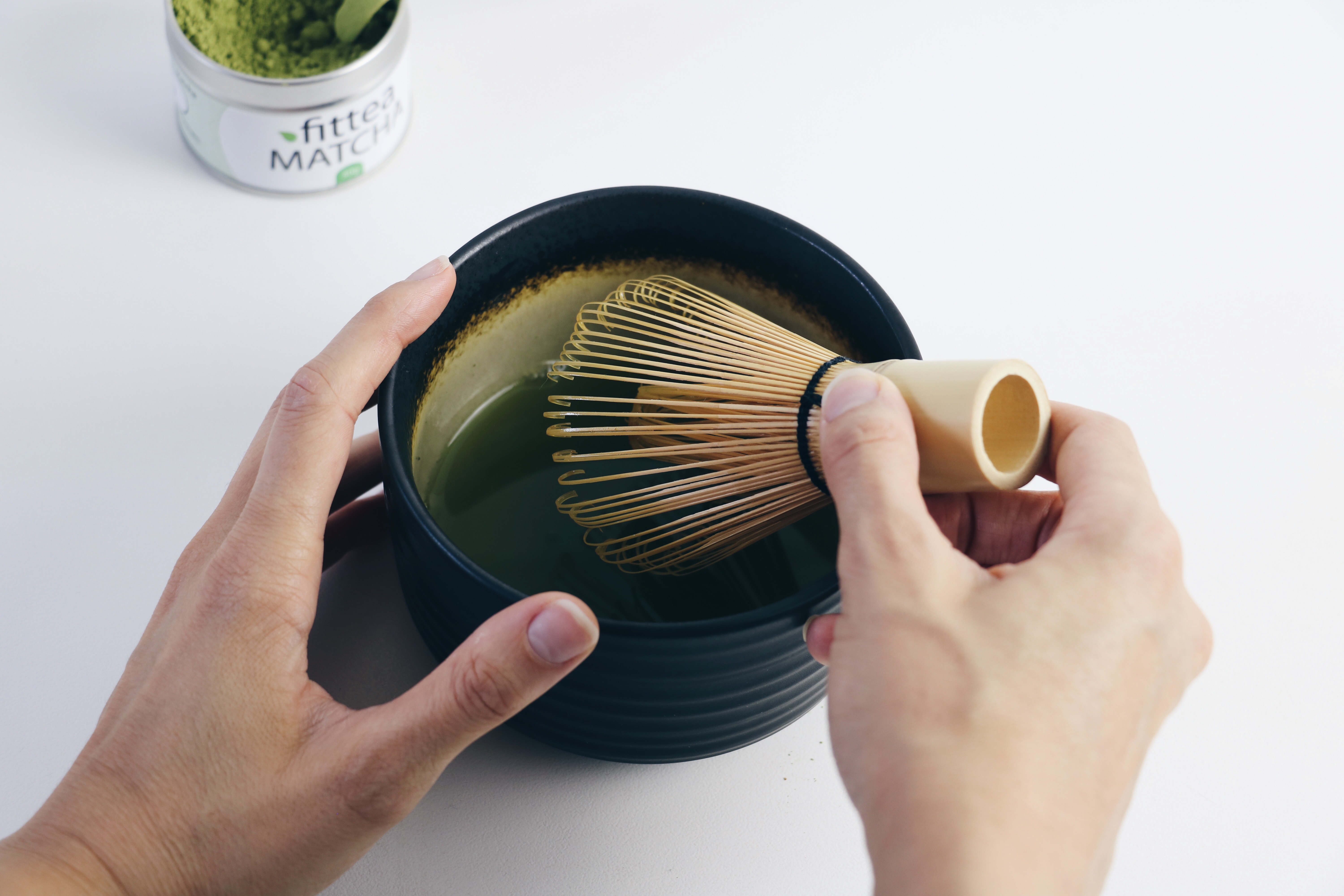 - Battre vivement le matcha en utilisant le fouet en bambou
